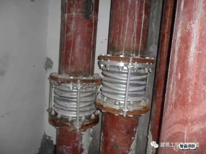 2. 水泵、冷水機組、風機盤管、空調機組等機電設備與水管之間用軟管連接,不使振動傳遞給管路。軟管有兩類:橡膠軟接管和不銹鋼波紋管。橡膠軟接管隔振減噪的效果很好,缺點是不能耐高溫和高壓,耐腐蝕性也差。在空調與采暖的水系統中多用橡膠接管。不銹鋼波紋管能耐高溫、高壓和耐腐蝕,但價格較貴,一般用于制冷劑管路的隔振。