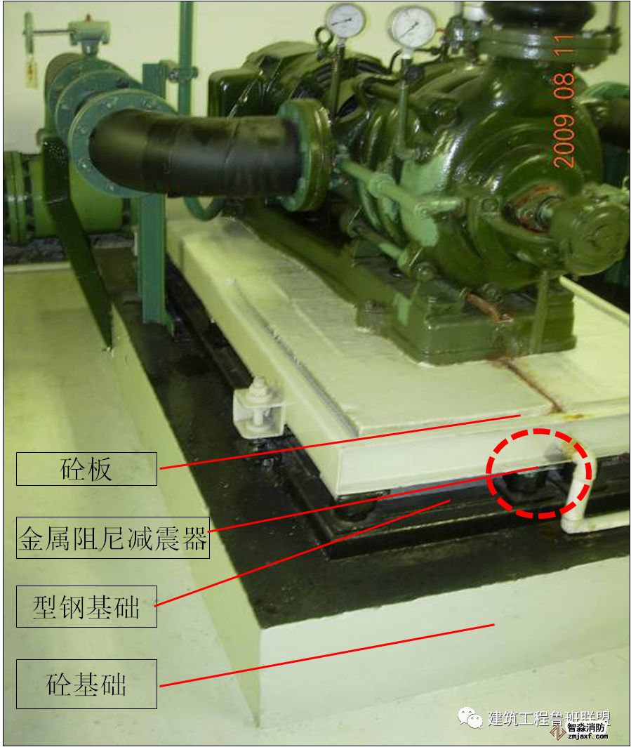 4. 空調機組、水泵落地式設備可直接采用橡膠隔振墊隔振或彈簧復合減震器。