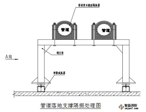 3. 在管路的支吊架、穿墻處使用非燃軟性材料填充做減振處理。