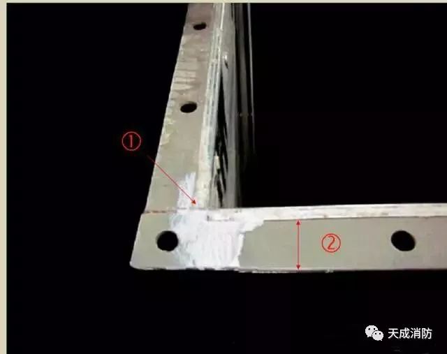 ② 風管法蘭鐵皮翻邊量大于6mm,小于9mm;翻邊緊貼法蘭,平整、無翹起,風管四角鐵皮重疊處鏟平無豁口,打膠嚴密。