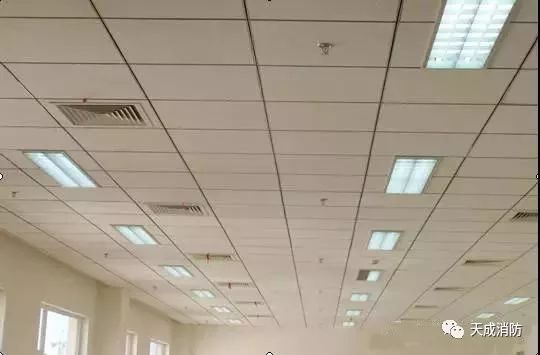 吊頂板上煙感、噴頭、風口及燈具安裝均勻合理的布局。