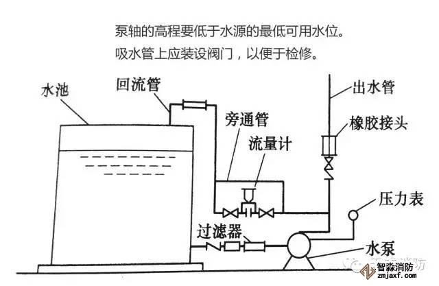 (2)消防水泵吸水管布置應避免形成氣囊;