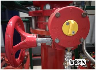 而發出聲光警報顯示火災區域。同時由于濕式報警閥的開啟,使一部分水流入報警管路,通過延時器延時后水力警鈴發出報警鈴聲,同時壓力開關動作向火災報警控制器發出反饋信號,火災報警控制器通過邏輯關系啟動噴淋泵。