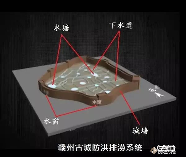 贛州古城防洪排澇系統(tǒng)分為4個部分:福壽溝、水塘、水窗、城墻