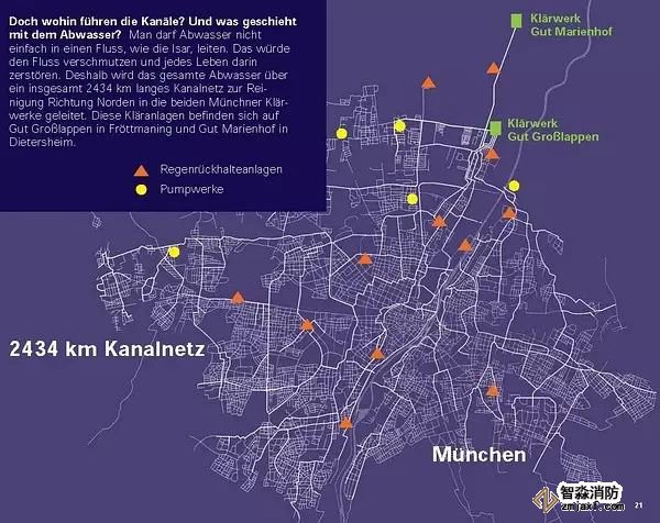 像照片中的那樣,每逢夏天,河邊是市民最愛的去除之一。曬太陽,燒烤,游泳。等等。但你能夠想象么,如此清澈的河水,有相當(dāng)一部分也是來自于慕尼黑城每天所排進(jìn)去的生活污水,工業(yè)廢水和包括落在地面的雨水。有容乃大的Isar河海涵了這些“污水”而依然美麗的功勞歸功于慕尼黑出色的市政排水系統(tǒng)和它背后的那個管理機(jī)構(gòu)——Münchner Stadtentw?sserung。