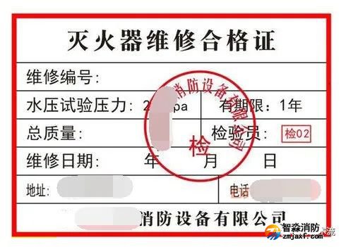 維修合格證的形狀和內容的編排格式由原滅火器生產企業或維修機構設計。